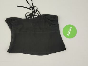 Top/crop New Look – czarny, elegancki - Marka: New Look - Rozmiar z metki: 12 (UK) - Krój: krótki top/crop, dopasowany, z krótkim rękawem - Dekolt: łagodnie zaokrąglony, z przodu efektowne, skośne...