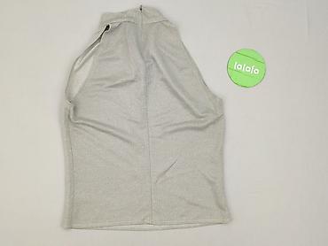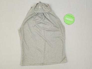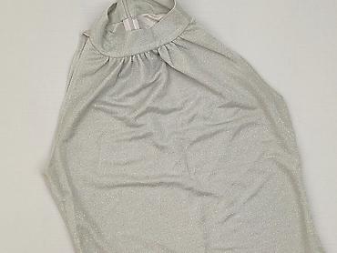 Damska bluzka bez rękawów – srebrna, z połyskiem - Krój: dopasowany, taliowany, bez rękawów, okrągły dekolt - Przód: tkanina z efektem brokatu/metalicznej nitki, gęsto zdobiona połyskującymi, okrą...Kolor: