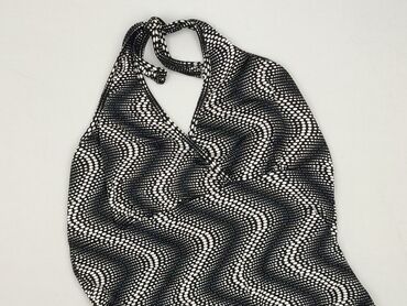 - Fason: top wiązany na szyi (halter), dekolt w kształcie V, lekko wydłużony krój