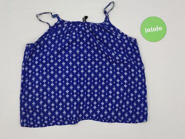Top damski H&M Conscious - Fason: koszulka bez rękawów, z wycięciem na plecach typu bokserka - Rozmiar z metki: S (EUR S, US S) - Wzór: drobny, geometryczny/roślinny print w odcieniach niebieskieg...