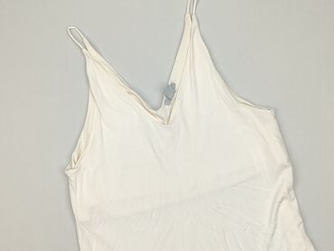 Biała koszulka na ramiączkach H&M - Marka: H&M - Rozmiar z metki: L (EUR L, US L, CA G, MX G, CN 175/104B) - Kolor: biały - Krój: dopasowany top na cienkich ramiączkach spaghetti, dekolt w kształc...
