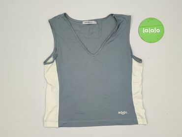Szara damska koszulka bez rękawów z koronką - Krój: bez rękawów, pod szyję (halterneck/racer) - Dekolt zdobiony aplikacją z delikatnej, ażurowej koronki w kolorze szarym - Materiał: miękka, elasty...