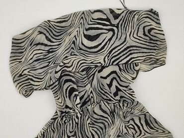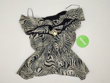 Top damski w czarno-białe paski, idealny na ciepłe dni. Charakteryzuje się dekoltem w kształcie litery V i wiązaniem na szyi, co zapewnia wygodę i stylowy wygląd. Prosty krój sprawia, że jest uniwe...