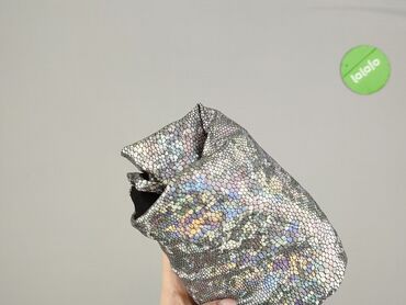 - Przód: srebrny, połyskujący materiał z drobnym, łuskowatym wzorem (efekt tęczowej poświaty/holo)