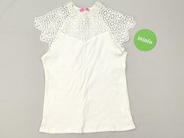 Top bez rękawów House - Kolor: biały - Rozmiar: S (z metki) - Fason: prosty, lekko dopasowany, z okrągłym dekoltem - Detale: ażurowa, koronkowa wstawka na górze przodu i pleców z kwiatowym wzorem;...