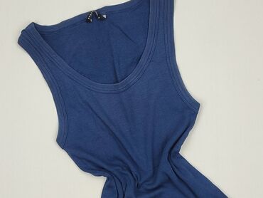 Top bez rękawów HOUSE - Model: prążkowany tank top - Rozmiar z metki: XL - Krój: dopasowany, elastyczny, okrągły dekolt, szerokie ramiączka - Wzór: poziome paski w kolorach granatowym, białym/krem...