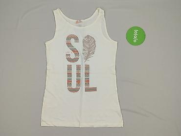 Damska koszulka na ramiączkach Funk’n’Soul - Rozmiar: S (na metce) - Krój: bokserka z wycięciem typu racerback - Kolor bazowy: ecru/biały z czarną lamówką - Wzór: humorystyczne, drobne nadruki (m....