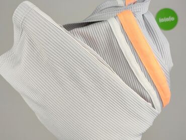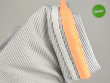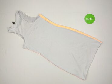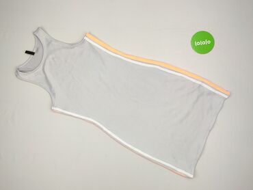 Szary, prążkowany top damski marki H&M Divided. Top ma okrągły dekolt i jest bez rękawów. Po bokach, wzdłuż szwów, znajdują się ozdobne białe i pomarańczowe paski, które dodają sportowego charakteru. Idealny do codziennych stylizacji, na trening lub jako baza pod inne ubrania.
