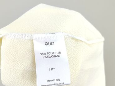 Krótki rękawJasnożółty top damski marki QUIZ, wykonany z 95% poliestru i 5% elastanu, co zapewnia komfort noszenia i dopasowanie. Krótkie rękawy i luźny fason sprawiają, że jest to idealny wybór na co dzień lub na specjalne okazje, oferując swobodę ruchów i stylowy wygląd. Wyprodukowany we Włoszech, model SS17.