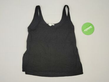 Czarny top na cienkich ramiączkach - Fason: prosty, lekko dopasowany, z dekoltem w kształcie litery V z przodu i z tyłu - Ramiączka: cienkie, nieregulowane - Długość: do bioder (krótki top/camisol...Stan: