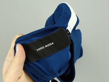 Granatowa bluzka damska marki Vero Moda z okrągłym dekoltem. Charakteryzuje się krótkimi, rozszerzanymi rękawami z falbankami, które dodają jej lekkości. Luźny krój zapewnia komfort noszenia i swob...