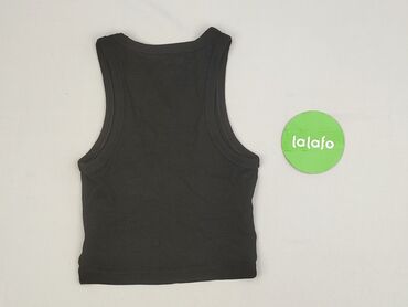 Czarny, prążkowany top bez rękawów typu crop. - Fason: dopasowany, krótki, z szerokimi ramiączkami i okrągłym dekoltem - Materiał: elastyczna dzianina prążkowana (miękka, rozciągliwa) - Kolor: głę...