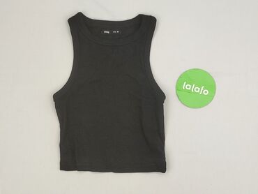 Czarny top bez rękawów (tank top) Shinsay - Kolor: czarny - Rozmiar: M (na metce) - Krój: dopasowany, z szerokimi ramiączkami i okrągłym dekoltem - Długość: do bioder - Materiał: prążkowana dziani...