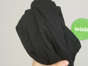Czarny crop top Sinsay - Marka: Sinsay - Rozmiar z metki: L - Krój: krótki (crop), z krótkim rękawem, okrągły dekolt - Materiał: 95% bawełna, 5% elastan – prążkowana dzianina, elastyczna i dopasow...