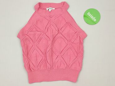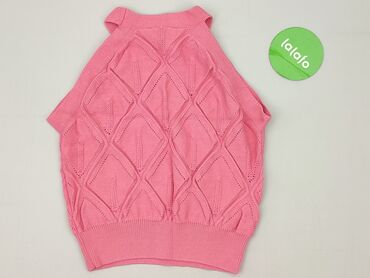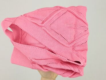 Różowy, dzianinowy top bez rękawów - Krój: prosty, bez rękawów, okrągły dekolt - Materiał: miękka dzianina o wyraźnym, pionowym splocie warkoczowym (prążkowanie zapewnia elastyczność i dopasowanie...Stan:
