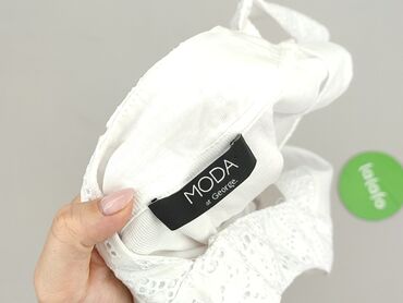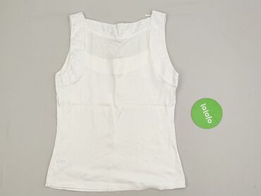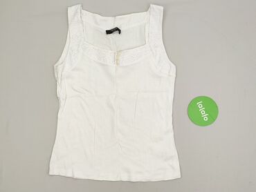 Biała bluzka damska Monty Moda Paris, rozmiar L. - Krój: prosta, z krótkim rękawem - Dekolt i rękawy wykończone ażurową koronką; koronka także na dole bluzki - Na piersi delikatny haft roślinny z ...