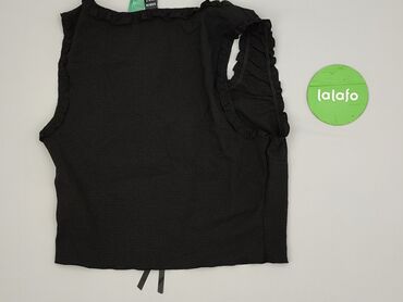 Czarny krótki top damski marki Shein, rozmiar S (EU 36, US 4). Wykonany w 100% z poliestru, co zapewnia trwałość i łatwość w pielęgnacji. Top posiada wysoki dekolt i fason bez rękawów, idealny do n...Stan: