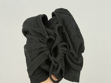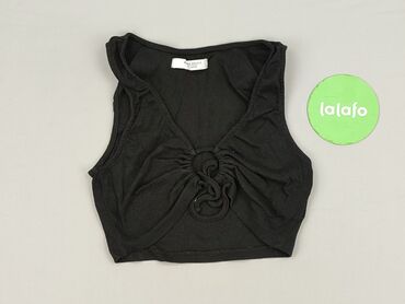 Czarny top House Brand, rozmiar M. - Krótki, dopasowany fason (crop top) - Krótkie rękawy - Żebrowana, elastyczna dzianina - Dekolt z niewielkim wcięciem przy szyi - Ozdobne sznurowania/wiązania z...