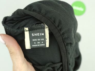 Czarny top SHEIN z długim rękawem - Krój: krótki/crop, dopasowany - Dekolt: szeroki, zaokrąglony - Materiał prążkowany, elastyczny - Skład: 67% poliester, 30% wiskoza, 3% elastan - Rozmiar z metki...