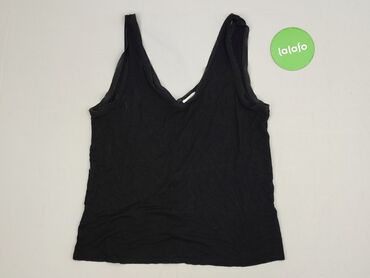 Czarny top bez rękawów RESERVED - Marka: RESERVED - Rozmiar z metki: M - Kolor: czarny - Fason: prosty, lekko skrócony; okrągły dekolt, szerokie ramiączka - Materiał: cienka, miękka tkanina o deli...