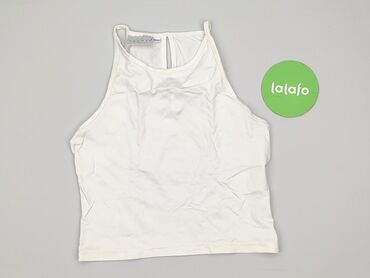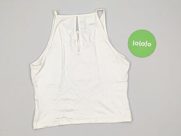 Biały top bez rękawów typu crop - Krój: krótki, dopasowany, z szerokimi wycięciami pod pachami i okrągłym dekoltem - Materiał: prążkowana, elastyczna dzianina (miękka i rozciągliwa) - Kolor: biały...