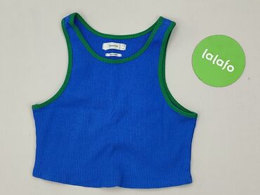 Bluzka damska Reserved Eco Aware - Marka: Reserved (linia Eco Aware) - Rozmiar z metki: M - Kolor: intensywny niebieski (kobalt) - Krój: krótki top z krótkim rękawem, okrągły dekolt - Detale: deko...