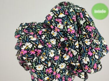 Krótki top damski Sinsay M - Krój: crop top z krótkim rękawem - Dekolt: półokrągły - Wzór: tropikalny – liście, kwiaty i kolorowe ptaki na ciemnym tle - Materiał: 95% bawełna, 5% elastan – miękki,...