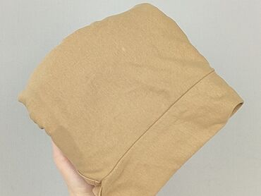 Beżowa bluzka damska Szachownica, rozmiar S/M. - Krój: t‑shirt z krótkim rękawem, lekko dopasowany, z ozdobnym węzłem z przodu u dołu. - Dekolt: okrągły z wycięciem w kształcie kropli. Linia dekol...