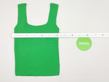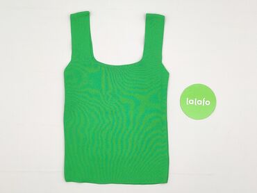 Top bez rękawów w kolorze limonkowym - Krój: dopasowany, bez rękawów, z krótką stójką/golfem - Rozmiar: S (metka „SIZE S”) - Materiał: prążkowana, elastyczna dzianina (miękka, rozciągliwa; dobrze ...