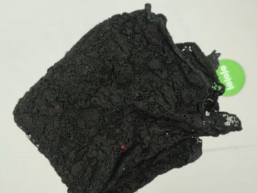 Czarna koronkowa bluzka/top - Elegancki top z ażurowej koronki w kwiatowy wzór - Dekolt w kształcie litery V z obu stron - Krótkie, szerokie rękawki tworzące falowany brzeg - Dół wykończony ozdobn...