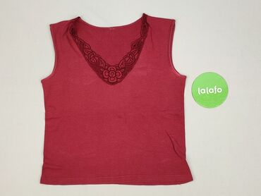 Bordowa bluzka damska bez rękawów z koronkową wstawką - Rozmiar: L (metka) - Materiał: 100% poliester - Kolor: głęboki bordowy - Fason: luźniejszy, lekko wydłużony tył (asymetryczny dół) - Dekolt/...