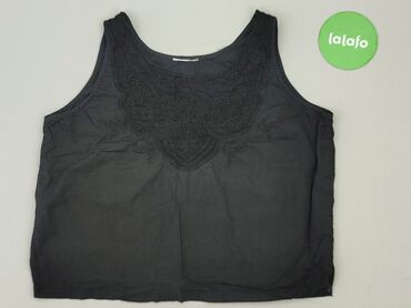 Damska koszulka na ramiączkach (top) - Kolor: czarny - Fason: bez rękawów, sportowy krój bokserki - Przód: nadruk roślinno-kwiatowy z subtelnymi, połyskującymi kropkami - Tył: wstawka z koronki w ...Stan: