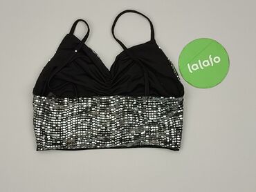 Top na ramiączkach MONKI - Model: krótki top/crop top na cienkich ramiączkach spaghetti - Rozmiar z metki: XS (CN 160/80A) - Kolor/wzór: czarna baza z gęstym, metalicznym, brokatowym nakrapianiem ...