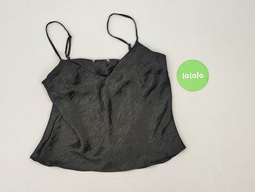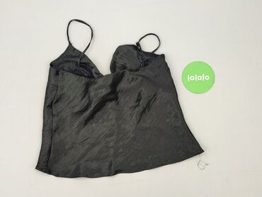 Czarny top na ramiączkach spaghetti - Krój: prosty, lekko luźny, z dekoltem w kształcie litery V z przodu i z tyłu - Materiał: cienka, miękko połyskująca tkanina o satynowym efekcie - Wykończenie:...