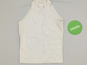 Top damski bez rękawów - Krój: dopasowany, bez ramiączek z szerokimi wycięciami pod pachami - Dekolt: szeroki, lekko kwadratowy/zaokrąglony - Materiał: dzianina prążkowana o wyczuwalnej, miękkiej ...Stan:
