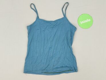 Top damski Orsay – błękitny, ażurowy - Marka: Orsay - Fason: bez rękawów, luźny top/bluzka - Kolor: jasny błękit z granatową lamówką przy dekolcie i pachach - Dekolt: okrągły z niewielkim wycięcie...
