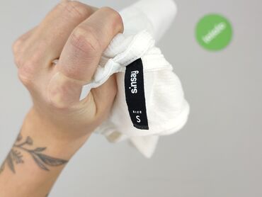 Biały top SHEIN - Krój: krótki crop top - Dekolt: okrągły - Rękaw: krótki, sięgający nad łokieć - Struktura materiału: elastyczna, marszczona/żakardowa faktura z drobnym, wypukłym wzorem - Kolor: ...