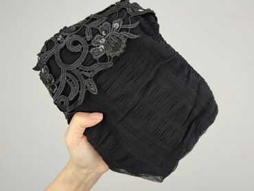 Czarny top bez rękawów z haftem kwiatowym - Materiał: 100% poliester (metka wewnętrzna) - Delikatna, lekko transparentna tkanina - Bogaty haft kwiatów w pastelowych kolorach (róże, błękit, zielone...