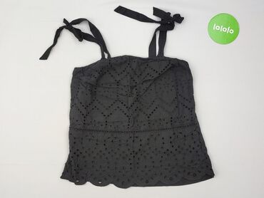 Czarna damska koszulka bez rękawów - Krój: top na ramiączkach z dekoltem w kształcie litery V zapinanym na 2 małe guziki - Materiał: 100% bawełna (metka) - Rozmiar z metki: 36/38 (orientacyjnie S/...