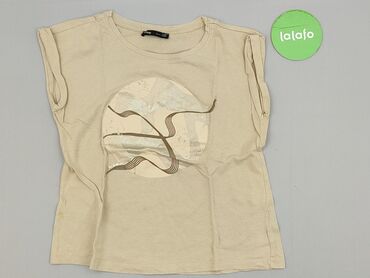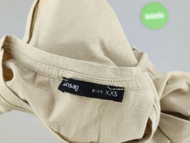 Top/bluzka Sinsay, rozmiar XXS - Krój: dopasowany, z krótkim rękawem i okrągłym dekoltem - Materiał: prążkowana, elastyczna dzianina (widoczne drobne pionowe prążki), miękka w dotyku - Kolor: karm...Beżowa koszulka damska Sinsay