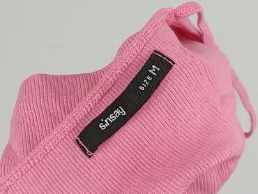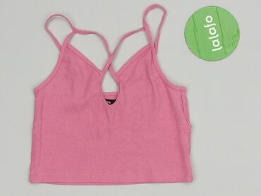 Top na ramiączkach Sinsay - Rozmiar: S (z metki) - Krój: krótki crop top - Kolor: jasnoróżowy/pastelowy - Materiał: prążkowana, elastyczna dzianina - Detale: podwójne cienkie ramiączka, obszycia w...Stan:
