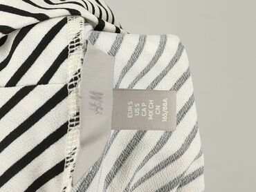 Top damski H&M bez rękawów - Fason: trapezowy, luźny, lekko rozszerzany ku dołowi - Dekolt: okrągły z delikatnym marszczeniem z przodu - Wzór: poziome paski w odcieniach szarości i bieli - Dwie na...