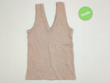 Beżowa koszulka/bezrękawnik damski - Krój: klasyczny top na ramiączkach, okrągły dekolt - Materiał: elastyczna, prążkowana dzianina (miękka, dobrze dopasowuje się do sylwetki; na zdjęciu widać roz...