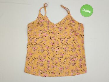 Bluzka bez rękawów SHEIN - Krój: luźny top na ramiączkach, dekolt w kształcie litery V z zakładką - Kolor/print: żółta baza z roślinnym, akwarelowym wzorem w odcieniach granatu, niebieskiego i zie...