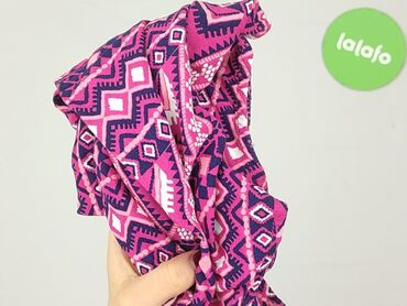 Bluzka damska SAND MAC, rozmiar 46. - Krój: luźny T-shirt z krótkim rękawem, lekko opadające ramiona. - Wzór: geometryczny/etno w romby i motywy azteckie. - Kolory: pastelowy róż i błękit na tle sz...