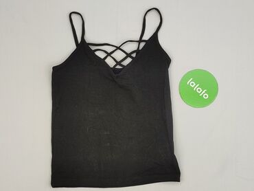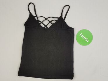 Top damski Sinsay Basic - Model: bezrękawnik/ribbed tank - Kolor: czarny - Rozmiar z metki: S - Dekolt: półokrągły ozdobiony podwójnym pasem drobnych, błyszczących dżetów - Krój: dopasowany, lekko...