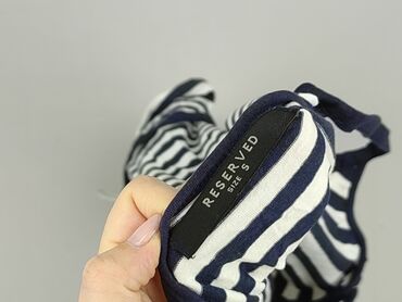 Bluzka damska w paski - Krój: luźna, lekko marszczona przy dekolcie i na dole, bez rękawów (szerokie ramiączka). - Wzór: poziome pasy granatowo-białe w stylu marynistycznym. - Dekolt: okrągły, z e...Top damski na ramiączkach Reserved