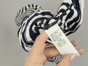 Bluzka damska tie-dye - Kolor: niebiesko‑biały, wzór tie-dye w poziome pasy - Krój: luźny, lekko skrócona długość - Rękawy: bufiaste, do łokcia, z doszytym mankietem - Dekolt: okrągły - Detal: dek...