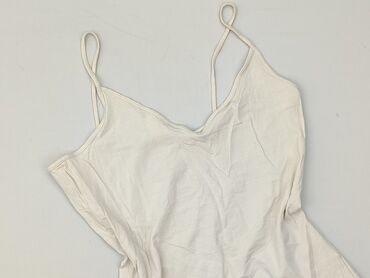 Biała damska koszulka na ramiączkach (top na szelkach) - Krój: klasyczny, dopasowany, cienkie ramiączka - Materiał: 100% bawełna (metka ze składem widoczna na zdjęciu) - Rozmiar z metki: L - Kolor...