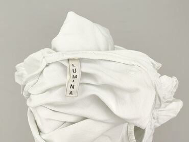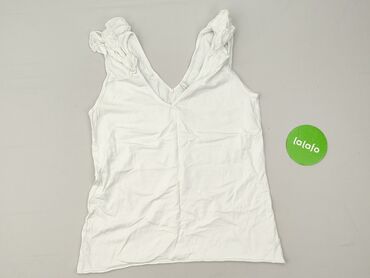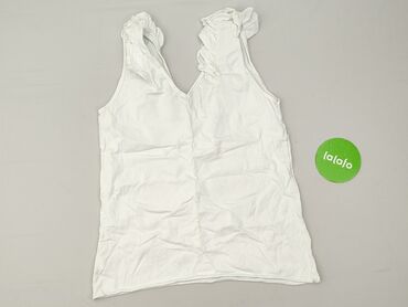 Biała damska koszulka bez rękawów z delikatnym połyskiem - Fason: lekko luźny top bez rękawów, zaokrąglony dekolt - Przód: półprzezroczysty panel z pionowymi pasami z drobnych cekinów, subtelnie p...Stan: